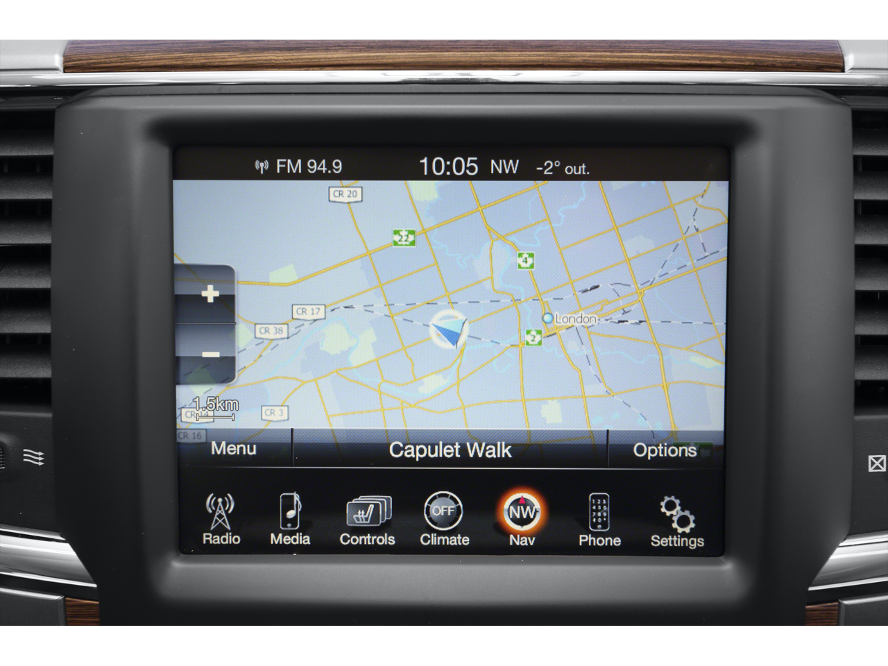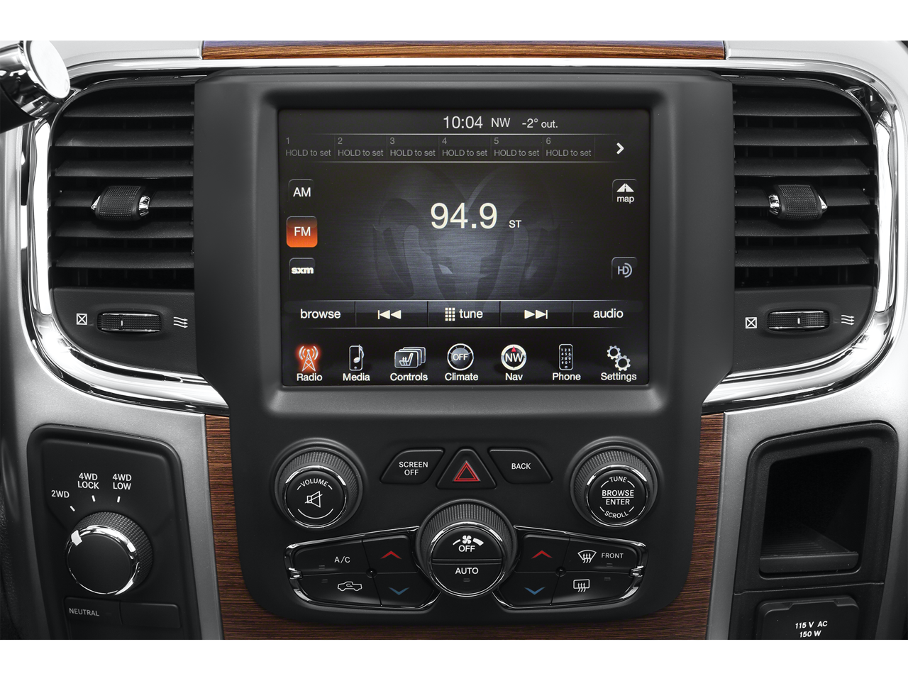 1 Year Trial (Registration Required), 10 Speakers, 115V Auxiliary Power Outlet, 20 x 8.0 Polished Aluminum Wheels, 220 Amp Alternator, 4-Wheel Disc Brakes, 5-Year SiriusXM Traffic Service, 5-Year SiriusXM Travel Link Service, 8.4 Touchscreen Display, ABS brakes, Air Conditioning, Alloy wheels, AM/FM radio: SiriusXM, Anti-Spin Differential Rear Axle, Audio memory, Auto High Beam Headlamp Control, Auto-dimming door mirrors, Auto-dimming Rear-View mirror, Automatic temperature control, Brake assist, Bumpers: chrome, Center Hub, Chrome Exterior Mirrors, Clearance Lamps, Cold Weather Group, Compass, Convenience Group, Delay-off headlights, Driver door bin, Driver vanity mirror, Dual front impact airbags, Dual front side impact airbags, Electronic Stability Control, Electronically Controlled Throttle, Emergency communication system, Engine Block Heater, Exterior Mirrors Courtesy Lamps, Exterior Mirrors w/Heating Element, Exterior Mirrors w/Memory, Exterior Mirrors w/Supplemental Signals, Folding Flat Load Floor Storage, Front anti-roll bar, Front Bumper Sight Shields, Front Center Armrest w/Storage, Front dual zone A/C, Front fog lights, Front reading lights, Fully automatic headlights, Garage door transmitter, GPS Antenna Input, GPS Navigation, Harman Radio Manufacturer, HD Radio, Heated door mirrors, Heated Front Seats, Heated front seats, Heated steering wheel, Heavy Duty Snow Plow Prep Group, Hemi Badge, High Back Seats, Illuminated entry, Integrated Voice Command w/Bluetooth®, Keyless Enter-N-Go, Leather steering wheel, Leather Trim 40/20/40 Bench Seat, Locking Tailgate, Low tire pressure warning, Manufacturer's Statement of Origin, Media Hub (SD, USB, AUX), Memory seat, Next Generation Engine Controller, Occupant sensing airbag, Outside temperature display, Overhead airbag, Overhead console, Panic alarm, ParkView Rear Back-Up Camera, Passenger door bin, Passenger vanity mirror, Power 10-Way Memory Driver & 6-Way Passenger Seats, Power Adjustable Pedals w/Memory, Power door mirrors, Power driver seat, Power Folding Chrome Trailer Tow Mirrors, Power Folding Mirrors, Power Lumbar Adjust, Power passenger seat, Power steering, Power Sunroof, Power windows, Protection Group, Quick Order Package 2FH Laramie, Radio data system, Radio: Uconnect 8.4A AM/FM/SXM/BT, Radio: Uconnect 8.4AN AM/FM/SXM/HD/BT/NAV, Rain Sensitive Windshield Wipers, Rear 60/40 Split Folding Seat, Rear seat center armrest, Rear step bumper, Rear Window Defroster, Remote keyless entry, Remote Proximity Keyless Entry, Remote Start System, Security system, SiriusXM Satellite Radio, SiriusXM Traffic, SiriusXM Travel Link, Speed control, Split folding rear seat, Spray In Bedliner, Steering wheel mounted audio controls, Tachometer, Tilt steering wheel, Tip Start, Traction control, Trailer Tow Mirrors, Transmission Oil Cooler, Trip computer, Turn signal indicator mirrors, Uconnect Access, Variably intermittent wipers, Vendor Painted Cargo Box Tracking, Ventilated Front Seats, Ventilated front seats, Voltmeter, Wheels: 18 x 8.0 Polished Aluminum, Winter Front Grille Cover.