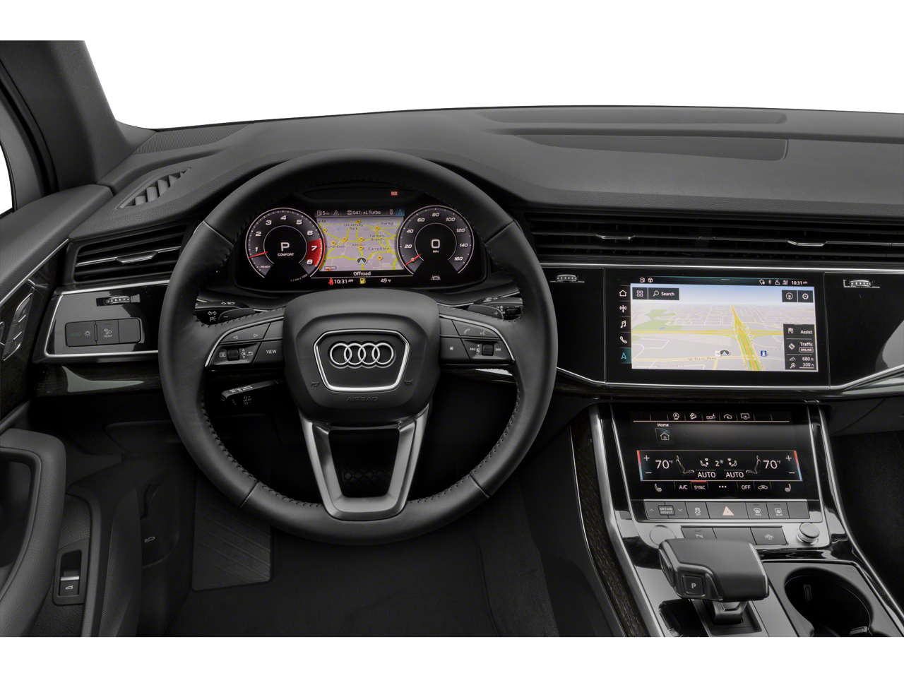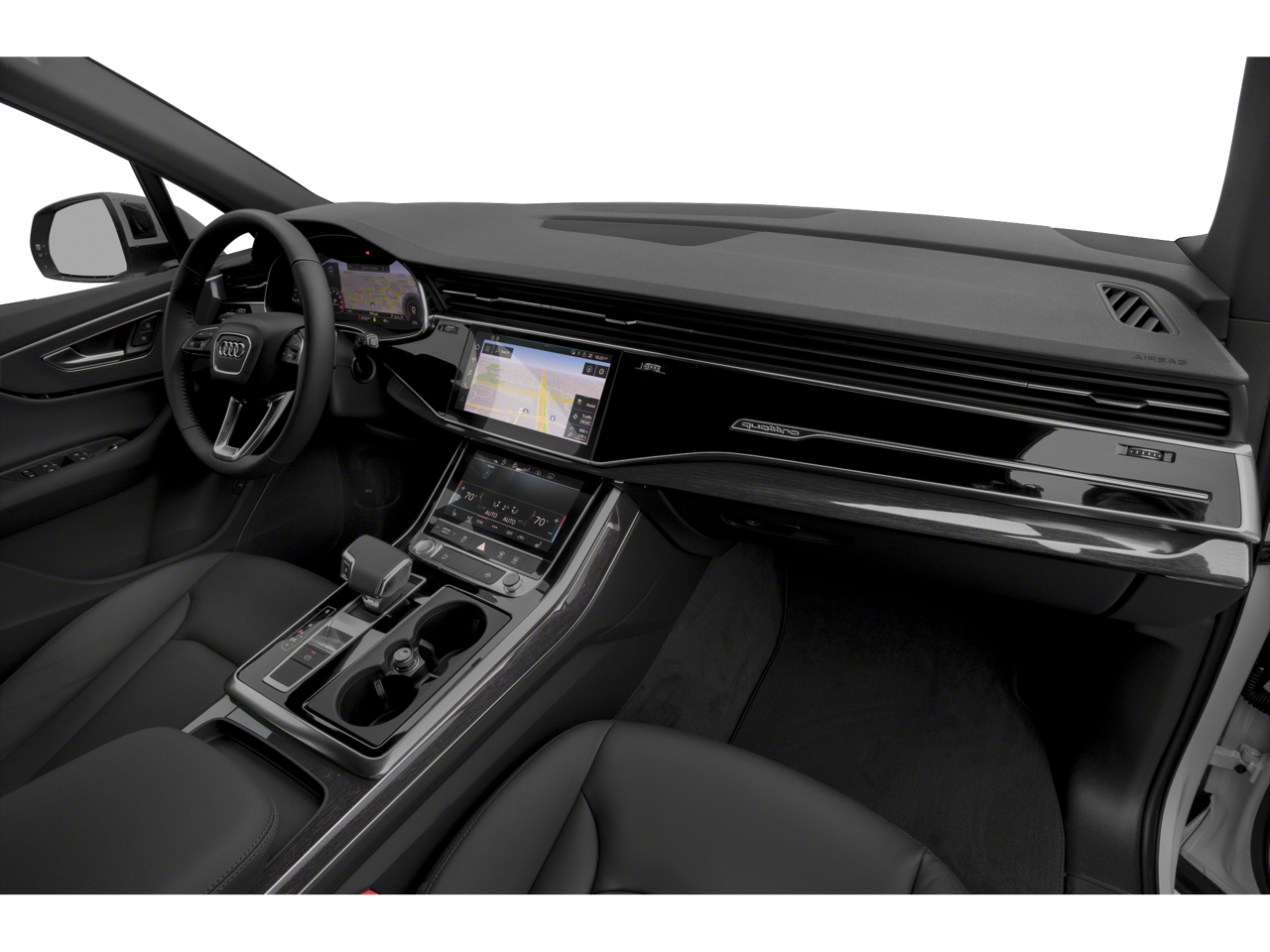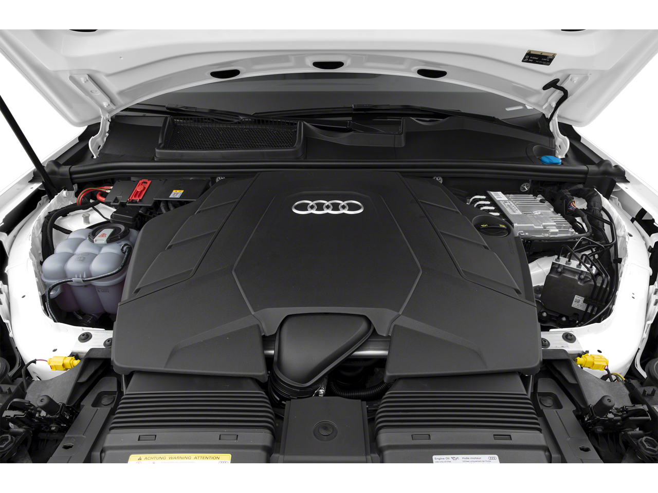 10 Speakers, 3-Spoke Multifunction Steering Wheel w/Paddles, 3.204 Axle Ratio, 3D Bose Surround Sound System, 3rd row seats: bench, 4-Wheel Disc Brakes, ABS brakes, Air Conditioning, Alloy wheels, AM/FM radio: SiriusXM, Ambient Interior Lighting Package, Audi Active Lane Assist w/Emergency Assist, Audi Adaptive Cruise Assist w/Traffic Jam Assist, Audi Phone Box w/Wireless Charging, Audi Side Assist w/Pre Sense Rear, Audi smartphone interface (Apple CarPlay/Android Auto), Auto High-beam Headlights, Auto-dimming Rear-View mirror, Automatic temperature control, Black Cloth Headliner, Black Rubber All-Weather Floor Mats (Set of 4), Brake assist, Bumpers: body-color, Cold Weather Package, Compass, Convenience Package, Delay-off headlights, Driver Assistance Package, Driver door bin, Driver vanity mirror, Dual front impact airbags, Dual front side impact airbags, Electronic Stability Control, Emergency communication system: Audi connect CARE, PRIME & PLUS, Exterior Parking Camera Rear, Four wheel independent suspension, Front anti-roll bar, Front Bucket Seats, Front Center Armrest, Front dual zone A/C, Front fog lights, Front reading lights, Fully automatic headlights, Garage door transmitter: HomeLink, Genuine wood door panel insert, Heated Auto-Dimming Power Folding Exterior Mirrors, Heated door mirrors, Heated Front Bucket Seats, Heated front seats, Heated Rear Seats, Illuminated Door Sills, Illuminated entry, Intersection Assist, Leather Seating Surfaces, Leather Shift Knob, Leather steering wheel, Low tire pressure warning, Memory seat, Navigation system: Audi MMI Navigation plus with Touch Response, Occupant sensing airbag, Outside temperature display, Overhead airbag, Overhead console, Panic alarm, Passenger door bin, Passenger vanity mirror, Power door mirrors, Power driver seat, Power Liftgate, Power moonroof, Power passenger seat, Power steering, Power windows, Premium Plus Package, Radio data system, Radio: Audi Sound System, Rain sensing wipers, Rear air conditioning, Rear anti-roll bar, Rear fog lights, Rear reading lights, Rear seat center armrest, Rear window defroster, Rear window wiper, Reclining 3rd row seat, Remote keyless entry, Roof rack: rails only, Security system, Speed control, Speed-sensing steering, Split folding rear seat, Spoiler, Steering wheel memory, Steering wheel mounted audio controls, Tachometer, Telescoping steering wheel, Tilt steering wheel, Topview Camera System, Traction control, Traffic Sign Recognition, Trip computer, Turn signal indicator mirrors, Variably intermittent wipers, Wheels: 19 5-Arm Star Design, Wheels: 20 5-Spoke Turbine-Design.