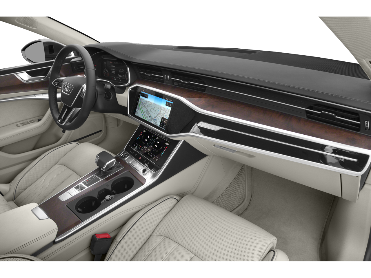 10 Speakers, 4-Wheel Disc Brakes, ABS brakes, Air Conditioning, Alloy wheels, AM/FM radio: SiriusXM, Auto High-beam Headlights, Auto tilt-away steering wheel, Auto-dimming door mirrors, Auto-dimming Rear-View mirror, Automatic temperature control, Brake assist, Bumpers: body-color, Compass, Delay-off headlights, Driver door bin, Driver vanity mirror, Dual front impact airbags, Dual front side impact airbags, Electronic Stability Control, Emergency communication system: Audi connect CARE, Exterior Parking Camera Rear, Four wheel independent suspension, Front anti-roll bar, Front Bucket Seats, Front Center Armrest, Front dual zone A/C, Front fog lights, Front reading lights, Garage door transmitter: HomeLink, Genuine wood console insert, Genuine wood dashboard insert, Genuine wood door panel insert, Heated door mirrors, Heated Front Bucket Seats, Heated front seats, Illuminated entry, Knee airbag, Leather Seating Surfaces, Leather Shift Knob, Low tire pressure warning, Memory seat, Navigation system: MMI Navigation plus, Occupant sensing airbag, Outside temperature display, Overhead airbag, Overhead console, Panic alarm, Passenger door bin, Passenger vanity mirror, Power door mirrors, Power driver seat, Power Liftgate, Power moonroof, Power passenger seat, Power steering, Power windows, Radio data system, Radio: MMI Navigation Plus, Rain sensing wipers, Rear air conditioning, Rear anti-roll bar, Rear fog lights, Rear reading lights, Rear seat center armrest, Rear side impact airbag, Rear window defroster, Remote keyless entry, Security system, Speed control, Speed-sensing steering, Speed-Sensitive Wipers, Split folding rear seat, Spoiler, Steering wheel memory, Steering wheel mounted audio controls, Tachometer, Telescoping steering wheel, Tilt steering wheel, Traction control, Trip computer, Turn signal indicator mirrors, Variably intermittent wipers, Wheels: 20 5-Twin-Arm Design.