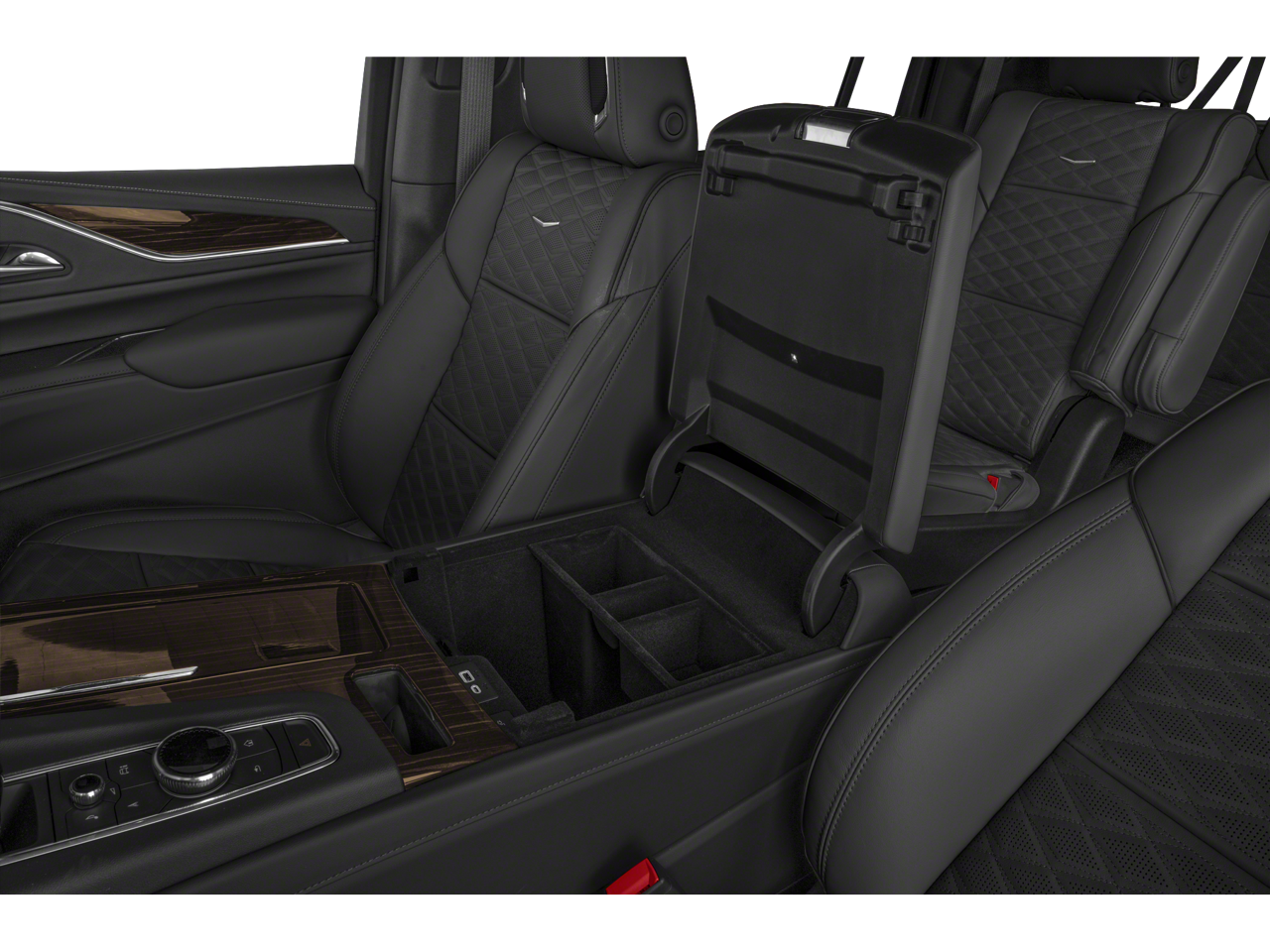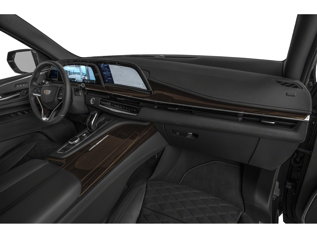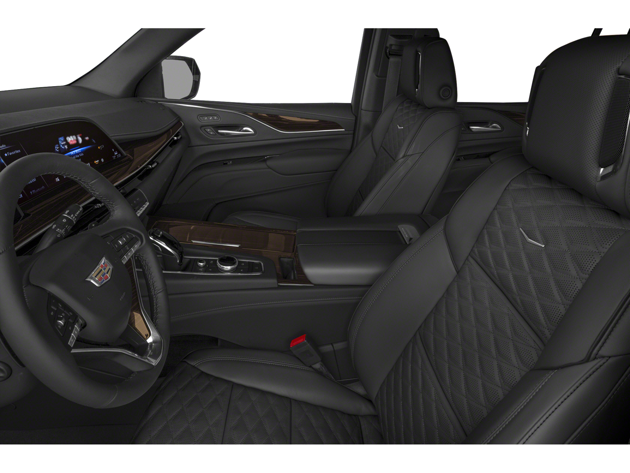 AWD, 16.9 Diagonal OLED Infotainment Screen, 19 Speakers, 2-Presets Memory For Driver Seat Adjuster, 2-Way Driver Power Lumbar Seat Adjuster, 2-Way Front Passenger Power Lumbar Seat Adjuster, 3.23 Axle Ratio, 3rd row seats: split-bench, 4-Way Power Driver Lumbar Seat Adjuster, 4-Way Power Front Passenger Lumbar Seat Adjuster, 4-Wheel Disc Brakes, 8-Way Power Driver Seat Adjuster, 8-Way Power Front Passenger Seat Adjuster, ABS brakes, Adaptive Cruise Control, Air Conditioning, AKG Studio 19-Speaker Audio System, Alloy wheels, AM/FM radio: SiriusXM with 360L, Apple CarPlay/Android Auto, Audio memory, Auto High-beam Headlights, Auto tilt-away steering wheel, Auto-dimming door mirrors, Automatic Seat Belt Tightening, Automatic temperature control, Brake assist, Bumpers: body-color, Compass, Delay-off headlights, Door Lock & Latch Shields, Driver door bin, Driver vanity mirror, Dual front impact airbags, Dual front side impact airbags, Electronic Stability Control, Emergency communication system: OnStar and Cadillac connected services capable, Enhanced Automatic Emergency Braking, Enhanced Automatic Parking Assist, Exterior Parking Camera Rear, Four wheel independent suspension, Front anti-roll bar, Front Bucket Seats, Front Center Armrest w/Storage, Front dual zone A/C, Front reading lights, Fully automatic headlights, Garage door transmitter, Glass Breakage Sensor, HD Radio, Heads-Up Display, Heated & Ventilated Driver & Front Passenger Seats, Heated door mirrors, Heated Driver & Front Passenger Seats, Heated front seats, Heated rear seats, Heated steering wheel, Illuminated entry, Lane Change Alert w/Side Blind Zone Alert, Leather Seating Surfaces w/Mini-Chevron Perf Inserts, Low tire pressure warning, Mechanical Limited-Slip Differential, Memory seat, Navigation System, Not Equipped w/2nd Row Express-Up Window Control, Not Equipped w/4-Way Driver & Fr Pass Pwr Lumbar, Occupant sensing airbag, Outside temperature display, Overhead airbag, Overhead console, Panic alarm, Passenger door bin, Passenger vanity mirror, Power door mirrors, Power driver seat, Power Liftgate, Power moonroof, Power Panoramic Tilt-Sliding Sunroof, Power passenger seat, Power steering, Power windows, Preferred Equipment Group 1SB, Premium Smooth Ride Suspension, Radio data system, Radio: AM/FM w/Navigation, Rain sensing wipers, Rear air conditioning, Rear anti-roll bar, Rear Camera Mirror, Rear Camera Mirror Washer, Rear Cross Traffic Alert, Rear reading lights, Rear window defroster, Rear window wiper, Reconfigurable Full-Color Head-Up Display, Remote keyless entry, Reverse Automatic Braking, Running Board Assist Steps, Security system, SiriusXM w/360L, Speed control, Split folding rear seat, Spoiler, Steering wheel memory, Steering wheel mounted audio controls, Super Cruise, Tachometer, Teen Driver, Telescoping steering wheel, Theft-Deterrent Alarm System, Tilt steering wheel, Traction control, Trip computer, Turn signal indicator mirrors, Variably intermittent wipers, Vehicle Inclination Sensor, Vehicle Interior Movement Sensor, Ventilated front seats, Voltmeter, Wheel Locks, Wheels: 22 14-Spoke Alloy w/Polished Finish, Wireless Apple CarPlay/Wireless Android Auto, AWD.