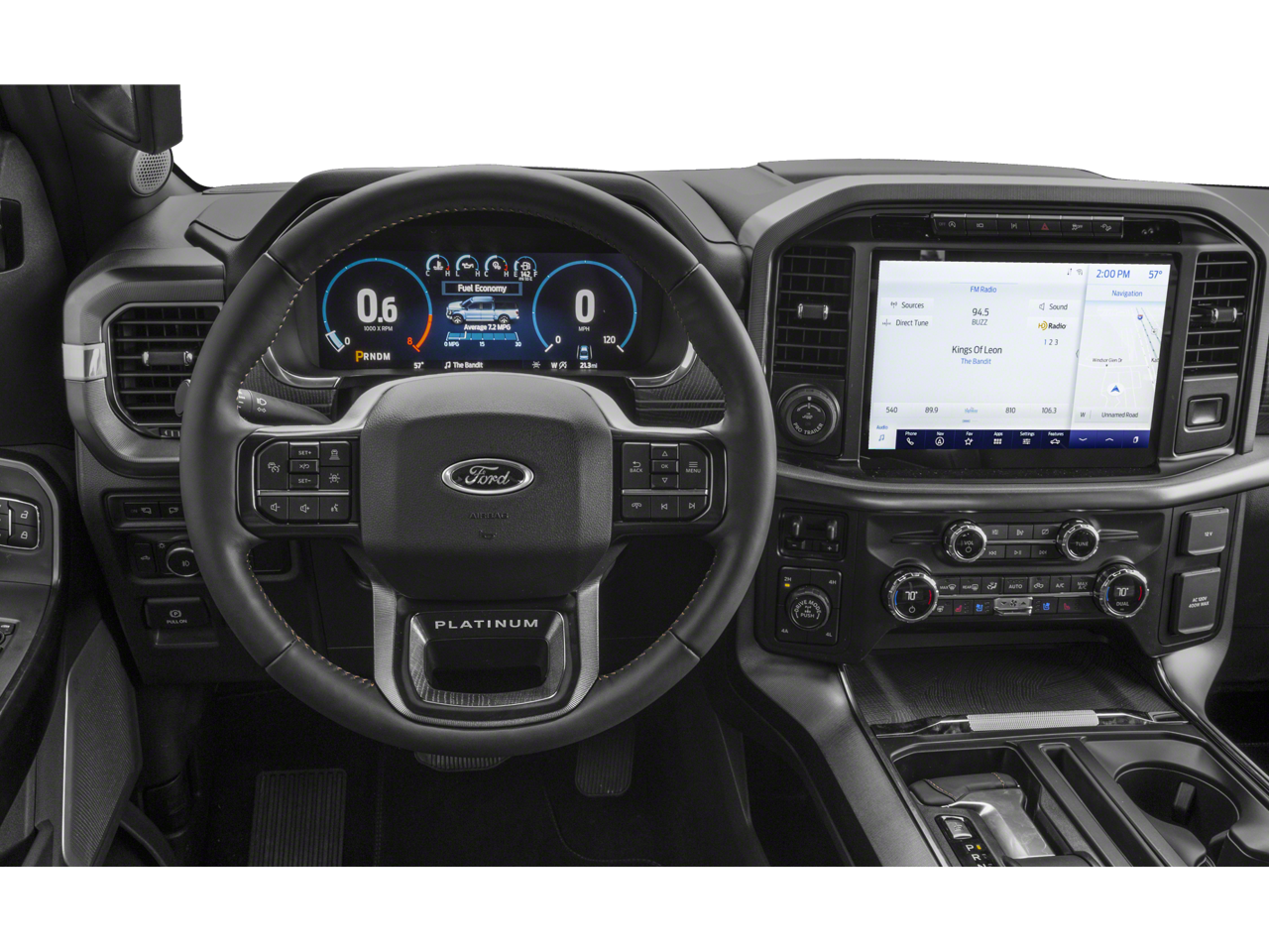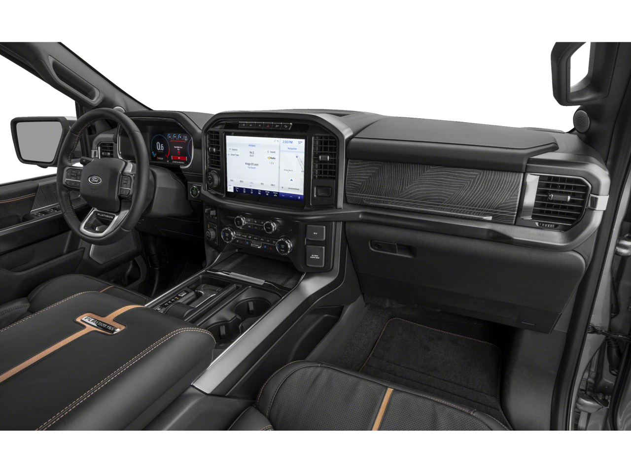 4WD, 20 Polished Aluminum Wheels, 360 Degree Camera, 4-Wheel Disc Brakes, 4x4 FX4 Off-Road Bodyside Decal, 8 Speakers, ABS brakes, Active Park Assist 2.0, Active Park Assist 2.0 Removal, Adjustable pedals, Air Conditioning, Alloy wheels, AM/FM radio: SiriusXM with 360L, Auto High-beam Headlights, Auto tilt-away steering wheel, Auto-dimming door mirrors, Auto-dimming Rear-View mirror, Automatic temperature control, Bed Utility Package, BoxLink, Brake assist, Bumpers: body-color, Center High-Mounted Stop Lamp CHMSL Camera Removal, Class IV Trailer Hitch Receiver, Compass, Delay-off headlights, Driver door bin, Driver vanity mirror, Dual front impact airbags, Dual front side impact airbags, Electronic Stability Control, Emergency communication system: SYNC 4 911 Assist, Equipment Group 701A High, Extended Range 36 Gallon Fuel Tank, Exterior Parking Camera Rear, Ford BlueCruise 1.0, Front anti-roll bar, Front Bucket Seats, Front Center Armrest, Front dual zone A/C, Front fog lights, Front reading lights, Front wheel independent suspension, Fully automatic headlights, FX4 Off-Road Package, Garage door transmitter, Heated door mirrors, Heated front seats, Heated rear seats, Heated steering wheel, Hill Descent Control, Illuminated entry, Inclination/Intrusion Sensor Removal, Integrated Trailer Brake Controller, Interior Work Surface, LED Box Lighting, Low tire pressure warning, Memory seat, Monotube Rear Shocks, Multicontour Seats w/Active Motion Removal, Occupant sensing airbag, Off-Road Tuned Front Shock Absorbers, Outside temperature display, Overhead airbag, Overhead console, Panic alarm, Passenger door bin, Passenger vanity mirror, Pedal memory, Power door mirrors, Power driver seat, Power passenger seat, Power steering, Power Tailgate, Power windows, Pro Power Onboard - 2KW, Pro Trailer Backup Assist & Pro Trailer Hitch Assist, Radio data system, Radio: B&O Sound System by Bang & Olufsen, Radio: B&O Unleashed Sound System by Bang & Olufsen, Rain sensing wipers, Rear reading lights, Rear seat center armrest, Rear step bumper, Rear window defroster, Remote keyless entry, Rock Crawl Mode, Security system, Speed control, Speed-sensing steering, Split folding rear seat, Steering Wheel Heat Removal (DISC), Steering wheel memory, Steering wheel mounted audio controls, SYNC 4 w/Enhanced Voice Recognition, Tachometer, Tailgate Step w/Tailgate Work Surface, Telescoping steering wheel, Tilt steering wheel, Tough Bed Spray-In Bedliner, Traction control, Trailer Tow Package, Tray Style Floor Liner, Trip computer, Turn signal indicator mirrors, Twin Panel Moonroof, Unique Multi-Contour Leather Bucket Seats, Variably intermittent wipers, Ventilated front seats, Voltmeter, Wheel Well Liner, 4WD.